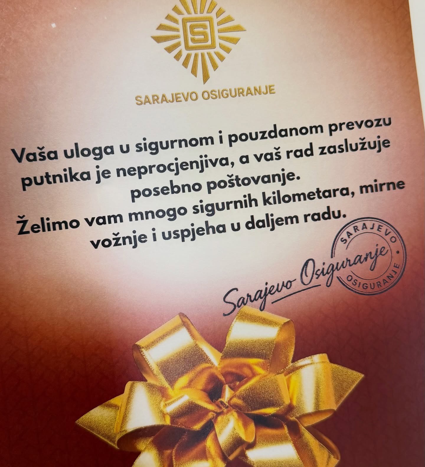 U znak zahvalnosti i poštovanja prema onima koji svakodnevno nose veliku odgovornost, povodom Međunarodnog dana vozača i automehaničara, Sarajevo Osiguranje uručilo je prigodne nagrade vozačima Centrotransa, ističući njihov profesionalizam, predanost i doprinos sigurnijem saobraćaju.